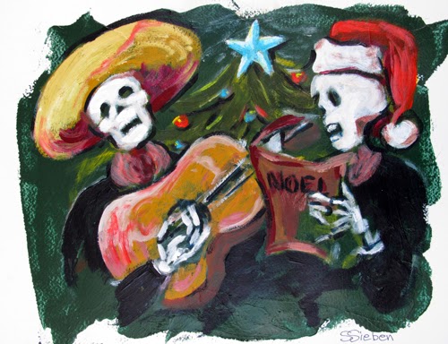 These fellows are related to my collection of "Skeletons Celebrating Life". I haven't done work in this genre for some time (except for commissions).but thought I would bring them out to extend "Holiday Greeting"